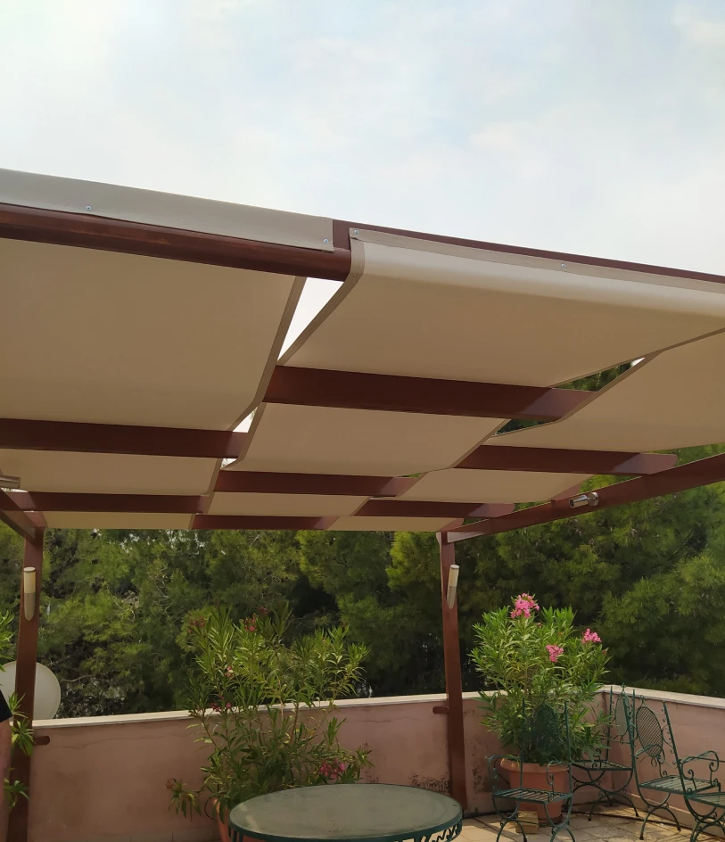 Η πλεκτή τέντα προσφέρει, σίγουρα, μια ιδιαίτερη αισθητική προσέγγιση στον εξωτερικό σας χώρο. Η πέργκολα με πλεκτά πανιά αποτελεί μια ιδιαίτερα ξεχωριστή λύση σκίασης, που ομορφαίνει και αναβαθμίζει τον χώρο όπου τοποθετείτε. Τα πλεκτά πανιά είναι μια πολύ καλή λύση ξυλινης αλλά και μεταλλικής πέργκολας.